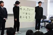 12月18日(木)、人権集会を行いました。まず、校長先生が「これからは、認め合い、支え合いの時代。」とお話され、人権作文の表彰式を行いました。その後、各クラスの人権スローガンの振り返りを発表しました。そして、全校生徒で共通点探しシャッフルをグループで行いました。みんな、楽しく人権について考えることができました。いじめのない、安心して楽しく過ごせる学校をみんなで作っていきましょう。