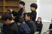 12月1日(月)、2年生がドローンを使ったプログラミング学習を行いました。技術科の時間で、iPadを用い、ドローンを課題のコース通り飛ぶようプログラムすることに挑戦しました。ドローンがスムーズに飛ぶこともあれば、空中でピタッと止まったままになり・・・・、うまく行かないこともありました。子どもたちは、グループでお互いに意見や考えを出し合い、協力して頑張りました。論理的に順序立てて考え、課題を解決する力、プログラミング的思考力を楽しく身に着けてほしいと思います。