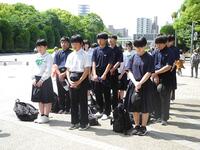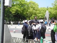 5月20日(火)、2年生が広島平和学習に行きました。晴天にも恵まれた中、広島平和記念公園へ到着しました。まず、原爆ドームを見学し、原爆の子の像の前で、平和集会を行いました。今まで心をこめて折った千羽鶴を献納し、平和な世界を作っていくことを誓いました。そして、広島平和記念資料館や平和記念公園、折り鶴タワーを見学しました。世界の平和について真剣に考えたり、友情を深めたりした、充実の一日でした。