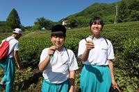 まず、最初に行ったのが学区内にある紅茶農園・紅茶専門店「アーリーモーニング」へ行きました。農園主の宮本さんから紅茶や紅茶栽培、紅茶づくりについてお話を聞いたり、紅茶畑での茶摘み体験、工場の見学をしたりしました。生徒は、紅茶の本場イギリスの人も認める「アーリーモーニング」の紅茶について感嘆しながら真剣にお話を聞きました。